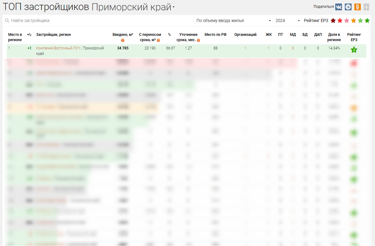 🏆 Мы №1 в регионе по объему ввода жилья с наивысшим показателем соблюдения застройщиком декларируемого срока